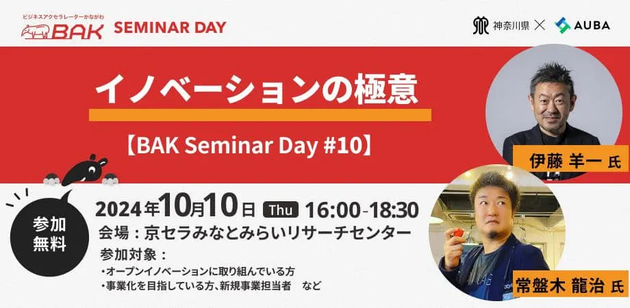 BAK Seminar Day~イノベーションの極意~【BAK Seminar Day#10】202410.11Fri01:00-03:30ベンチャー/スタートアップスタートアップイノベーション中小企業