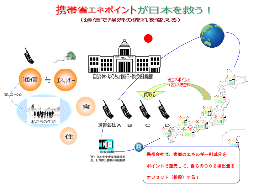 - 省エネナビで電気代を見える化!30年にわたり3,000カ所の施設で20%以上のエネルギーコスト削減をエスコ事業により 実現してきた社団代表、元祖省エネの伝道者が、自治体とJVで省エネナビを設置した家庭からCO2削減分を買取ります。日本初の携帯省エネ貯金です。