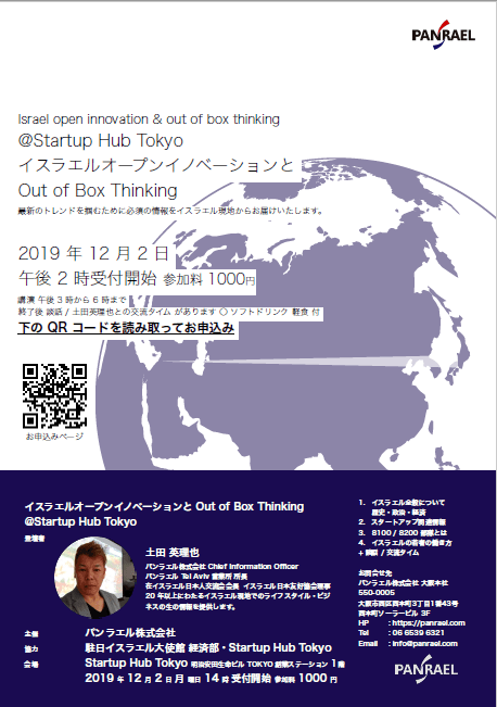 イスラエルのあらゆる分野のエコシステムから生まれたイノベーションのスタートアップ商材を日本のイノベーションと融合し日本の新規事業創出に取り入れサポートする事がこれからの日本の事業には必要です。クローズドなイノベーションでは未来はありません。