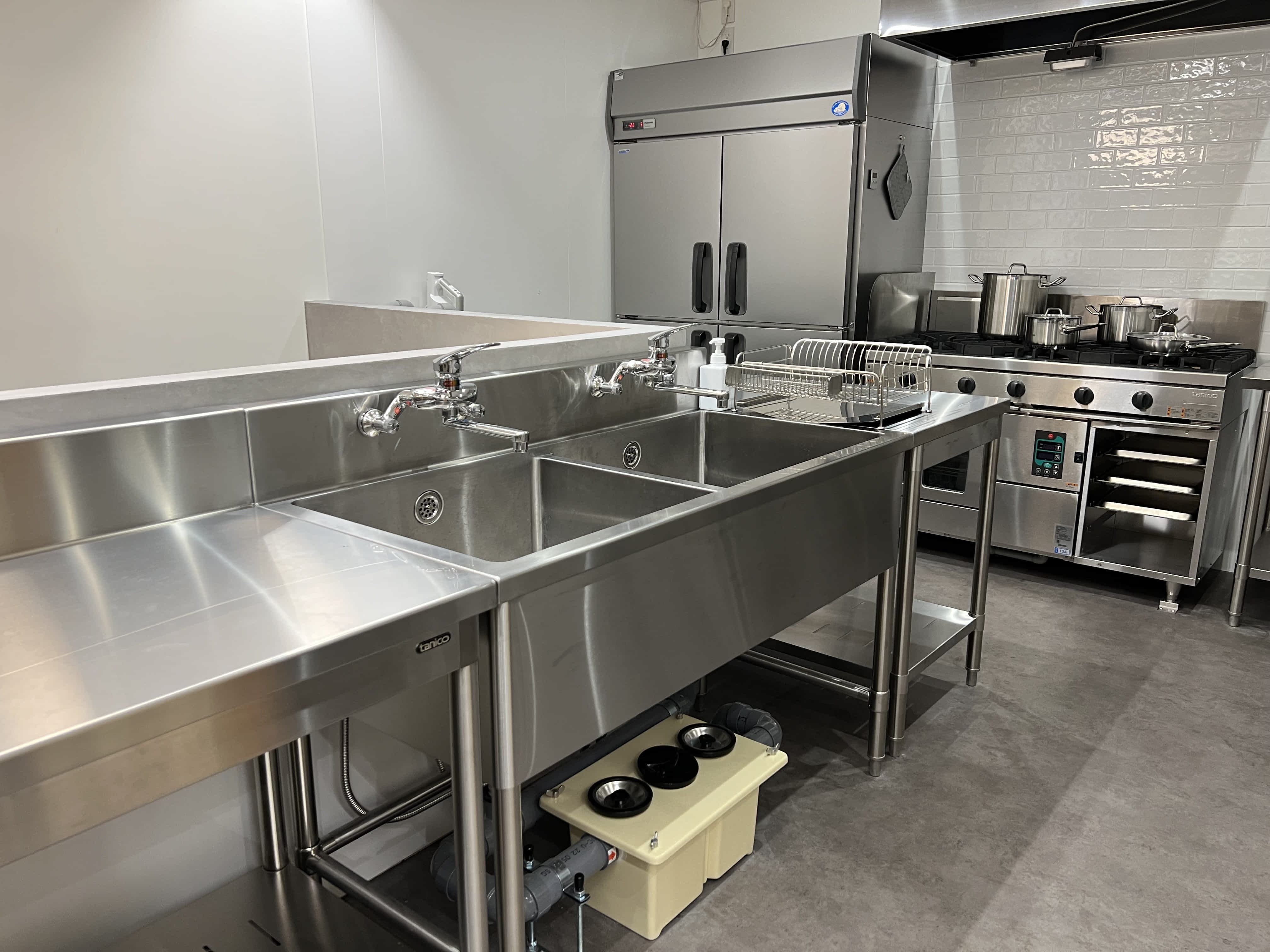 食品商材を「つくる」「保管する」「梱包・発送する」ができる施設として誕生した施設で、飲食店営業、そうざい製造業、菓子製造業が行える3つの独立したキッチンスペースと専有で利用できる冷凍冷蔵庫やブラストチラー、真空機などの機材も設備しています。
