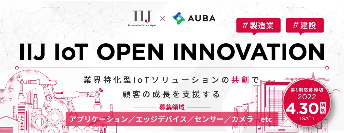 IoTという言葉は世の中に浸透しているが、実際に製造や建築の現場でモノとインターネットがつながり、課題を解決している事例はそれほど多くない。そこに、オープンイノベーションの力で切り込もうとするのが、インターネットとともに歴史を築いてきたIIJだ。これまでの実績があるからこそ今回のプログラムにおいて、IIJに確固たる強みがあることや、すぐにPoCがスタートできる環境は、非常に魅力的だろう。製造業や建設業の現場における課題解決方法を編み出していきたいという方は、ぜひ応募を検討していただきたい。