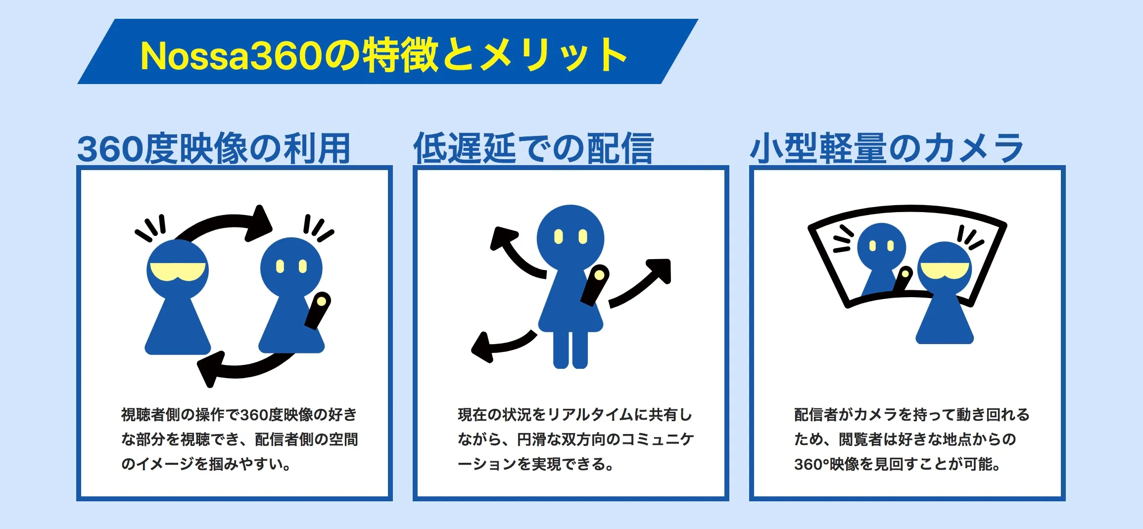 Nossa 福井氏 : 当社は、360度映像を用いたコミュニケーションツールを開発しています。応募時はまだプロダクトのリリース前の、プロトタイプ段階でした。そこで実証実験ができる場を探していたところ、このプログラムを知りました。