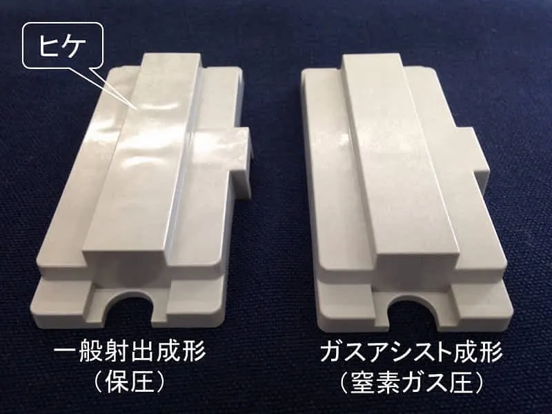 一般の樹脂成形では不可能な形状・外観・寸法精度を可能にするガスインジェクション技術を得意としています。