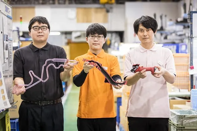 - 自動車、医療機器等のプラスチック射出成形製品の製造販売を行っています。なかでも特殊製法であるガスアシスト技術に注力し、№1を目指し技術水準の高度化を図っています。ガスアシスト製法による自動車等のグリップ類は、大手自動車部品メーカーに採用されシェアを拡大し、世界初となる研究開発も自動車メーカーと共同で行うなど、開発力としても高い評価を得ています。
