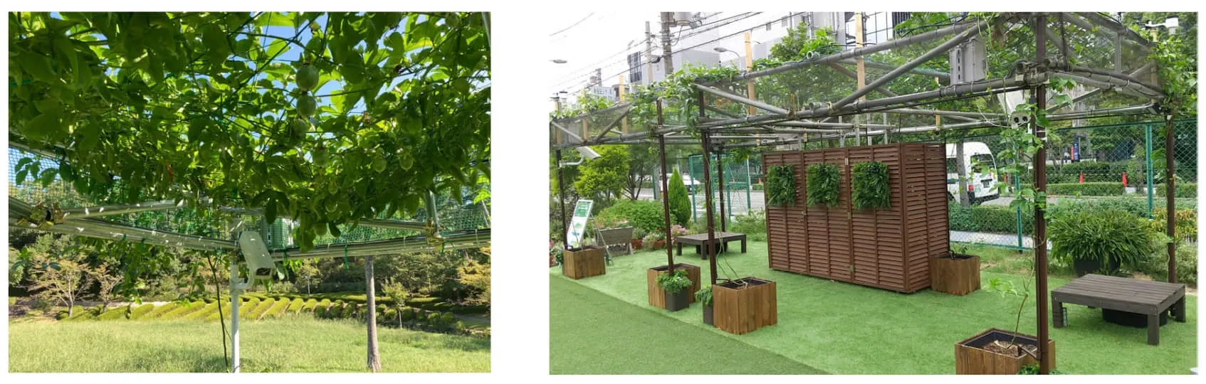 茅野氏 : IoT緑化シェードの第一の意義は、都市に集まる人々へ涼しくて快適な空間を提供することですが、それだけでなく、パッションフルーツの実を活用したイベント開催などでの、集客やPRにも貢献できると考えています。