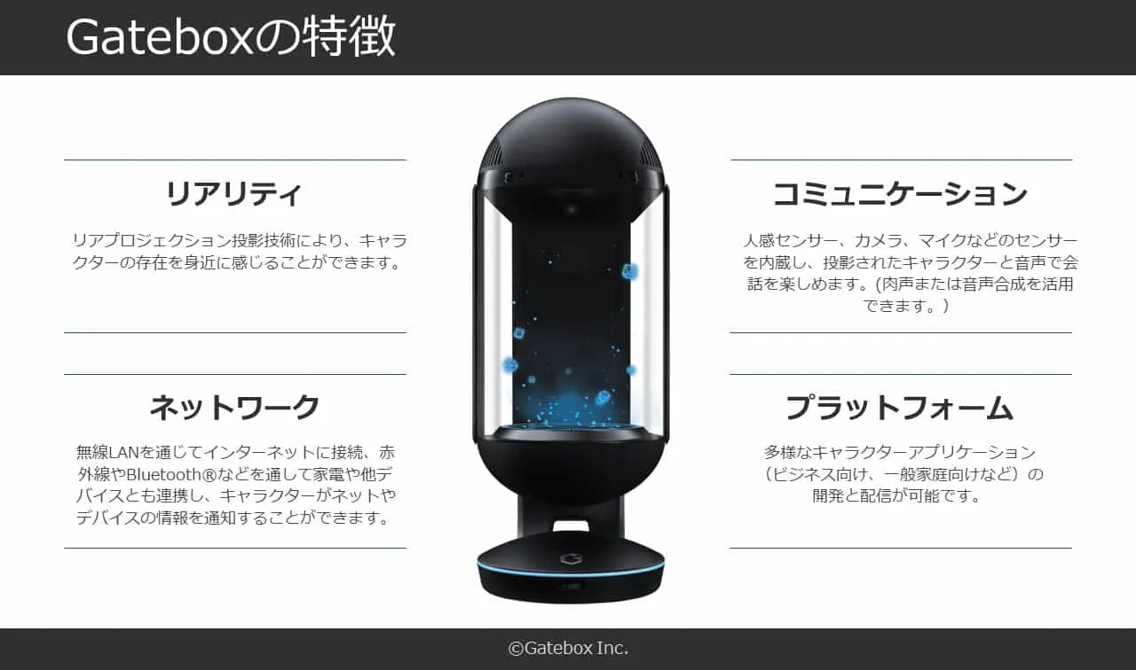 Gatebox量産モデル(GTBX-100)、Gateboxプラットフォーム活用、キャラクターAI活用にあたってのノウハウ