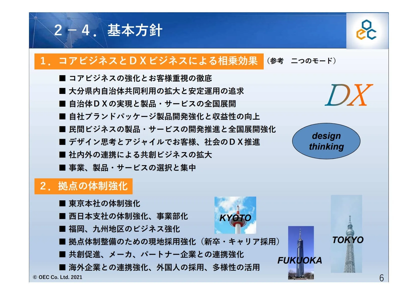 既存顧客である大分県の自治体においては、システムを動かすだけではなく、新しいDXの追求もしていかねばなりません。そのためには、新しい製品・サービスの開発が必要ですし、開発したものはパッケージ化して全国展開していきたい。もちろん、自治体だけではなく民間ビジネスにも取り組みます。そこには、デザイン思考やアジャイルといった新しい発想・開発スタイルも必要になってくるでしょう。