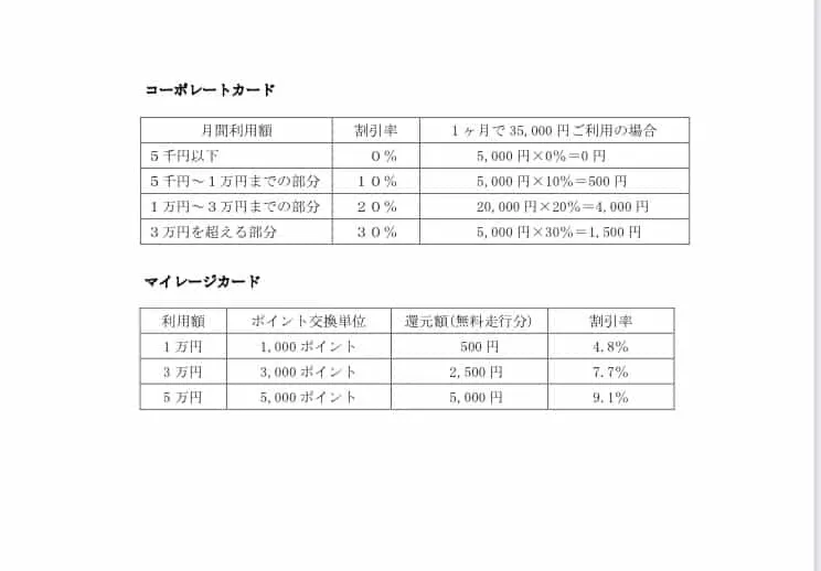 車両1台当たりの月間利用金額に対して割引が受けられます。