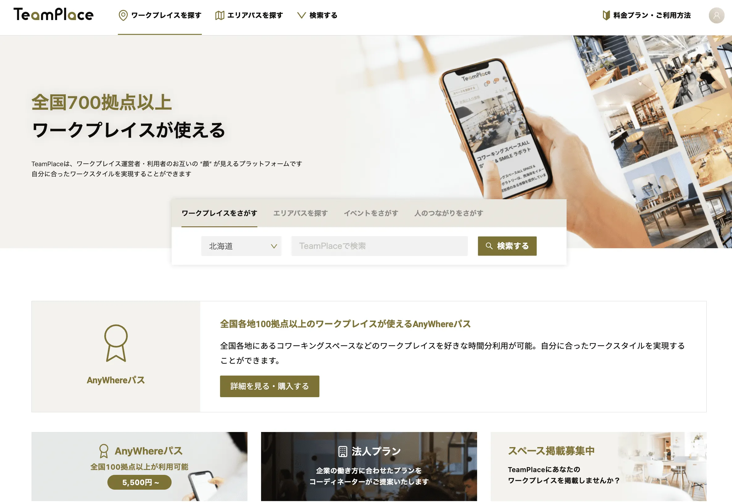 ・仕事場のサブスクリプションサービス・人でつながるワークプレイスプラットフォーム TeamPlace
