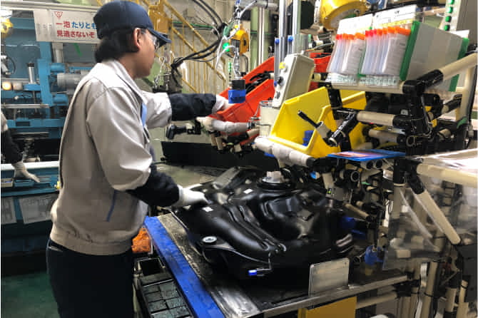 近年は、PHEV車用の電池ケース・樹脂製リッドBOXモジュール製造などで事業を拡張し、周辺部品を含めた燃料タンクシステム全体の開発・生産を行う「燃料系総合サプライヤー」として更なる発展を目指しています。
