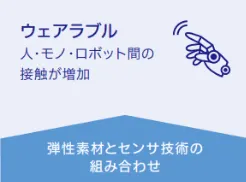 ウェアラブルデバイスは、装着時に不快感が少なく高効率に人体との間で情報を入出力すること、ロボットは人と触れる際の安全を確保しつつ、人との間で情報伝達することが求められています。