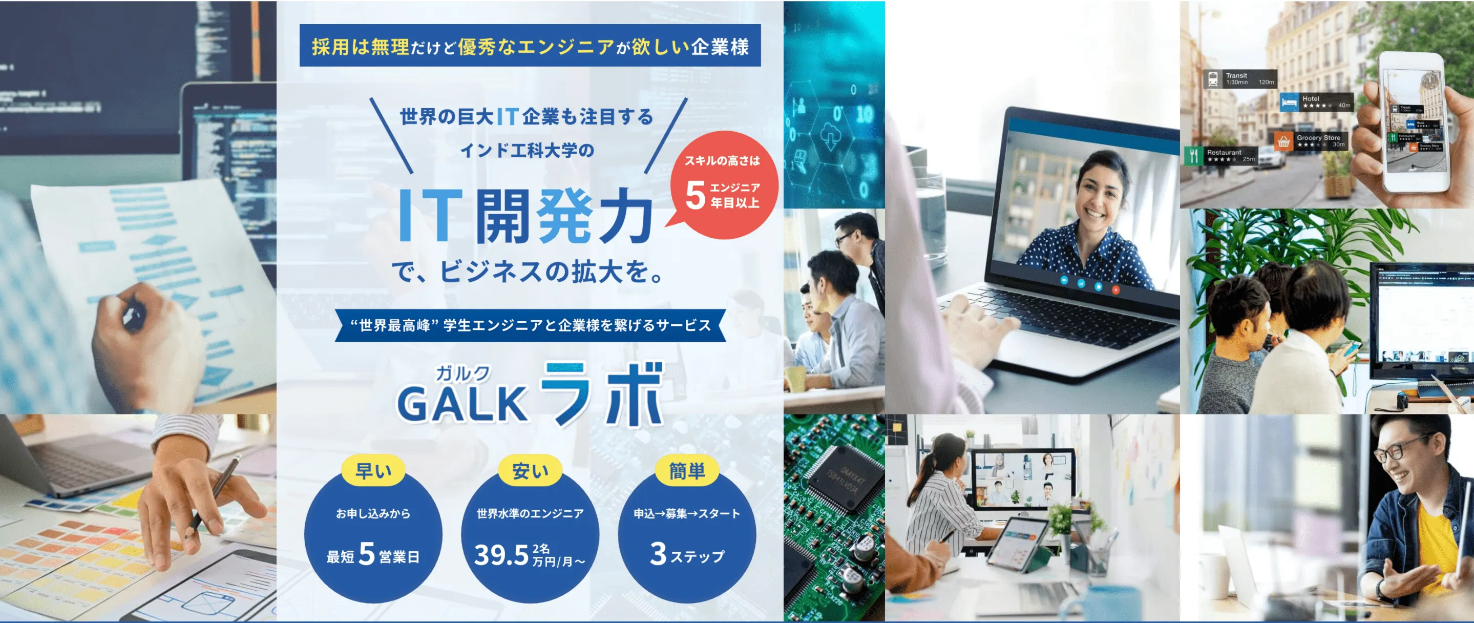- インド工科大学の先端IT人材プラットフォームGALK(ガルク)の運営 ①GALKリクルート インド工科大学の先端ITエンジニア採用支援サービス