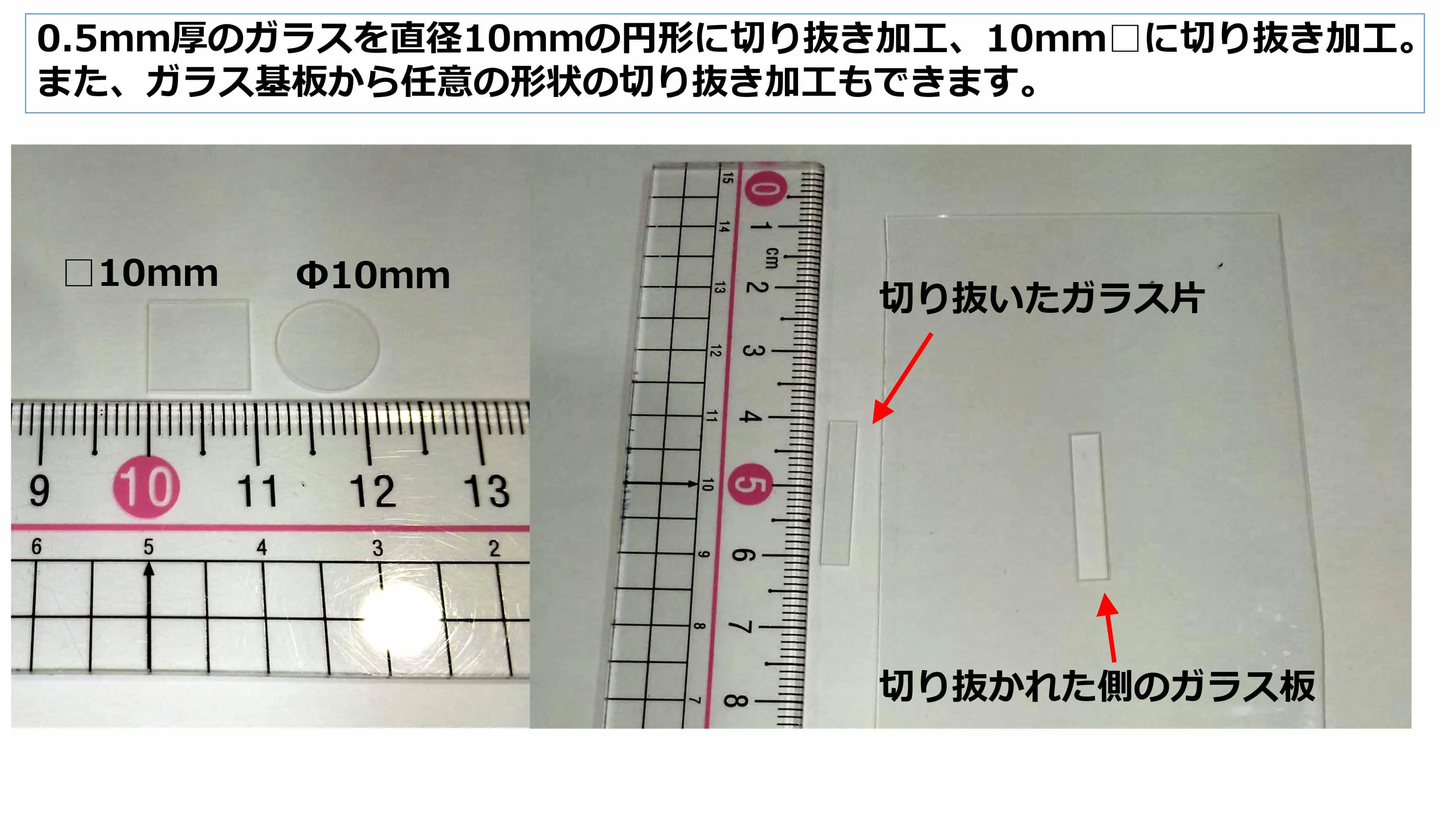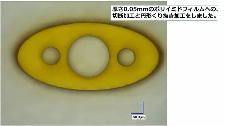 ・比較的薄い金属、樹脂、セラミックなどへの非接触で熱影響のない微細加工品の受託加工、試作加工。