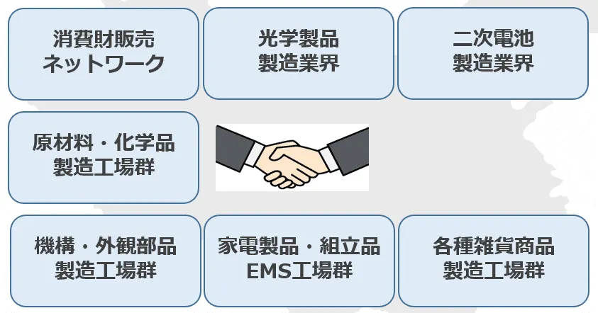 強みとなる中国人脈と中国提携企業業界のネットワークを活かして、御社商品・サービスの中国販路開拓や中国からの部材・商品の調達のサポートを致します。