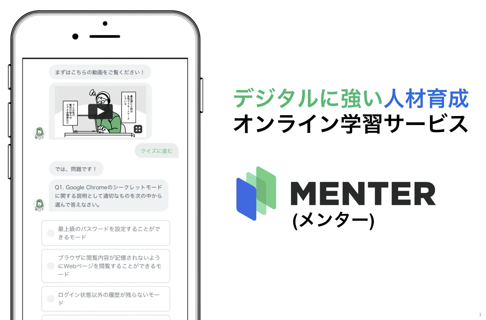 - 文系DX人材の育成を支援する会社。 オンライン学習 MENTER を通じて組織が備えるデジタルスキルを可視化し、IT人材の育成をサポートします。