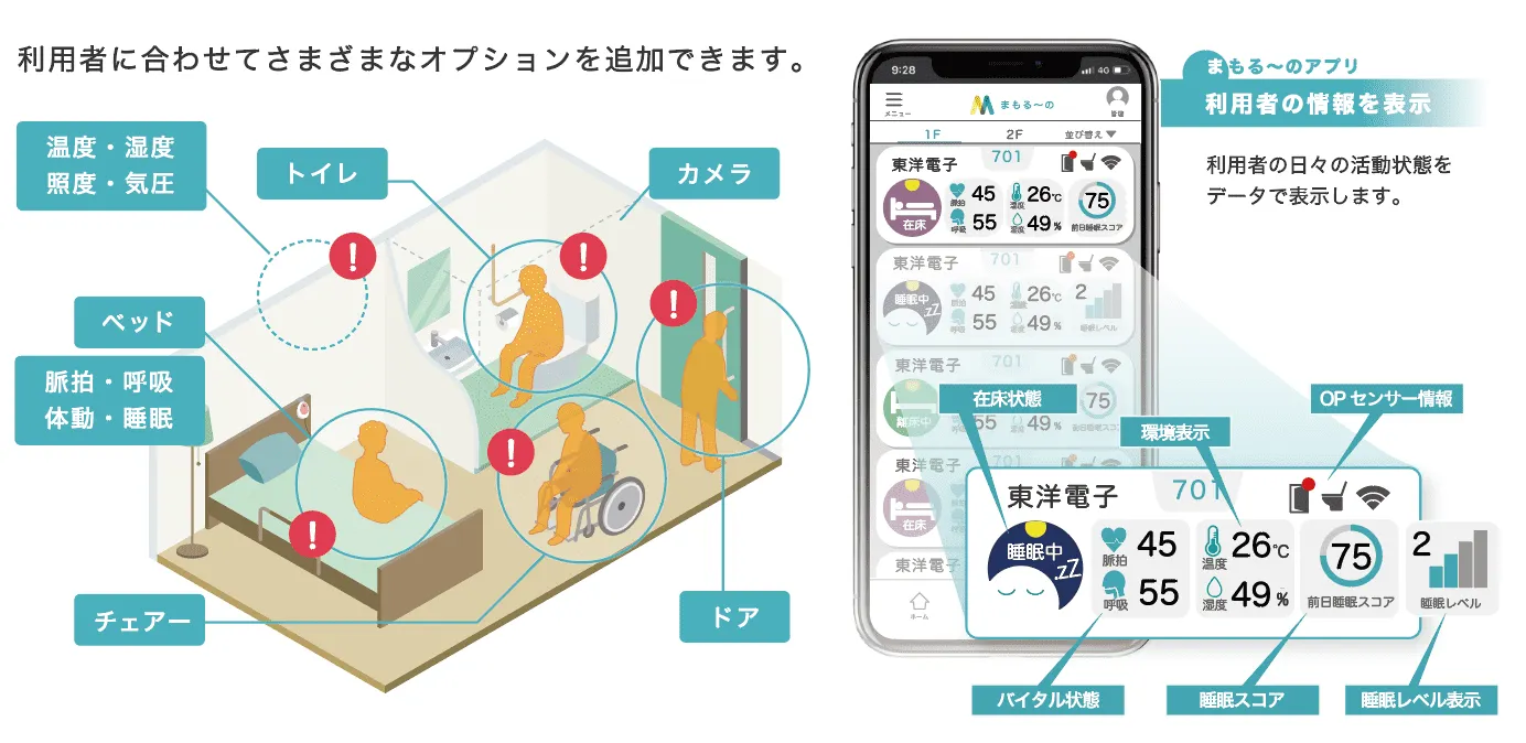 介護施設向け見守り機器「まもる~のSHIP」と在宅介護向け「まもる~のONE」(介護保険適)をクラウド上で一元化