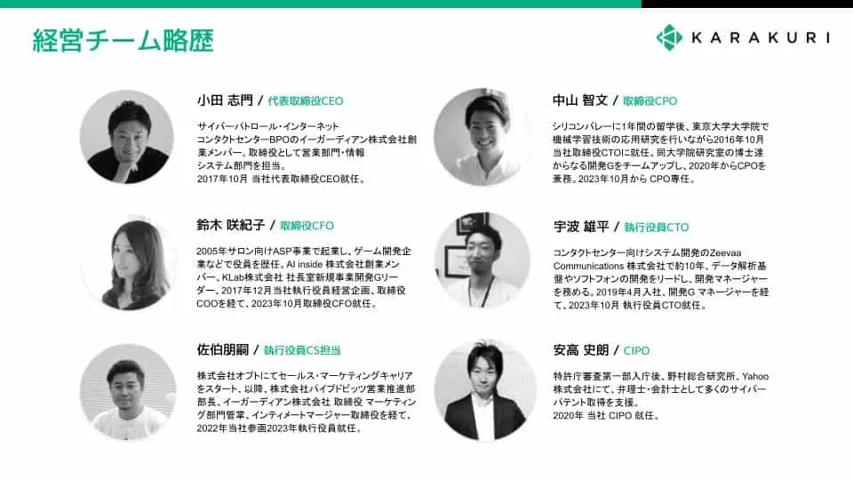 - ・カラクリ株式会社は、大規模言語モデル(KARAKURI LM)の開発を行っています。 ・コールセンター・コンタクトセンター向けにKARAKURI Digital CS Seriesというチャットボットやオペレータ支援のAIのSaaSを提供しています。