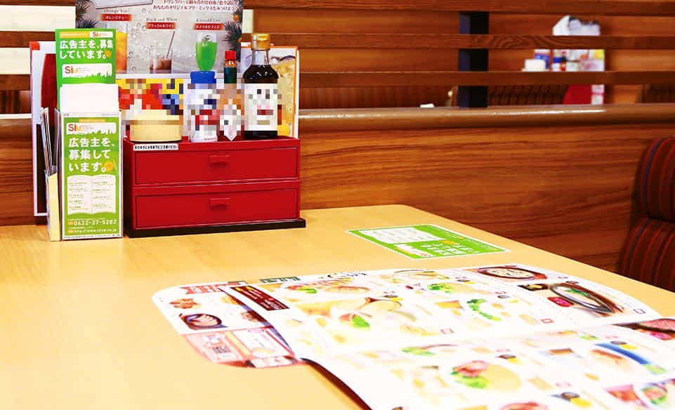 弊社が取り扱っているのは、国内最大級のファミレスチェーン様や温浴施設様など、お店にご来店されるお客様に情報を届けられる広告媒体です。