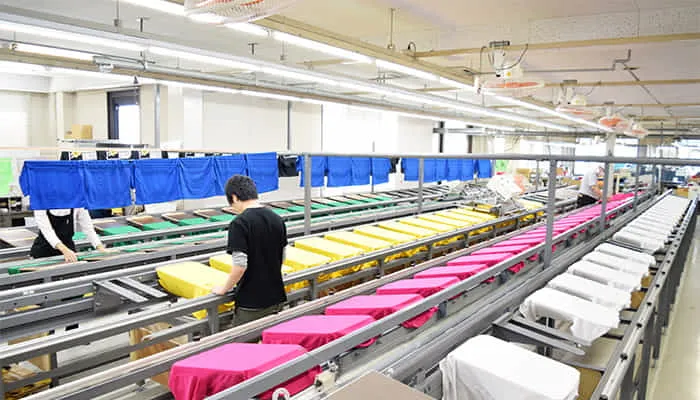 ①自社工場を持っており、ウェア類のプリントは大量生産ができる体制を構築しております。
