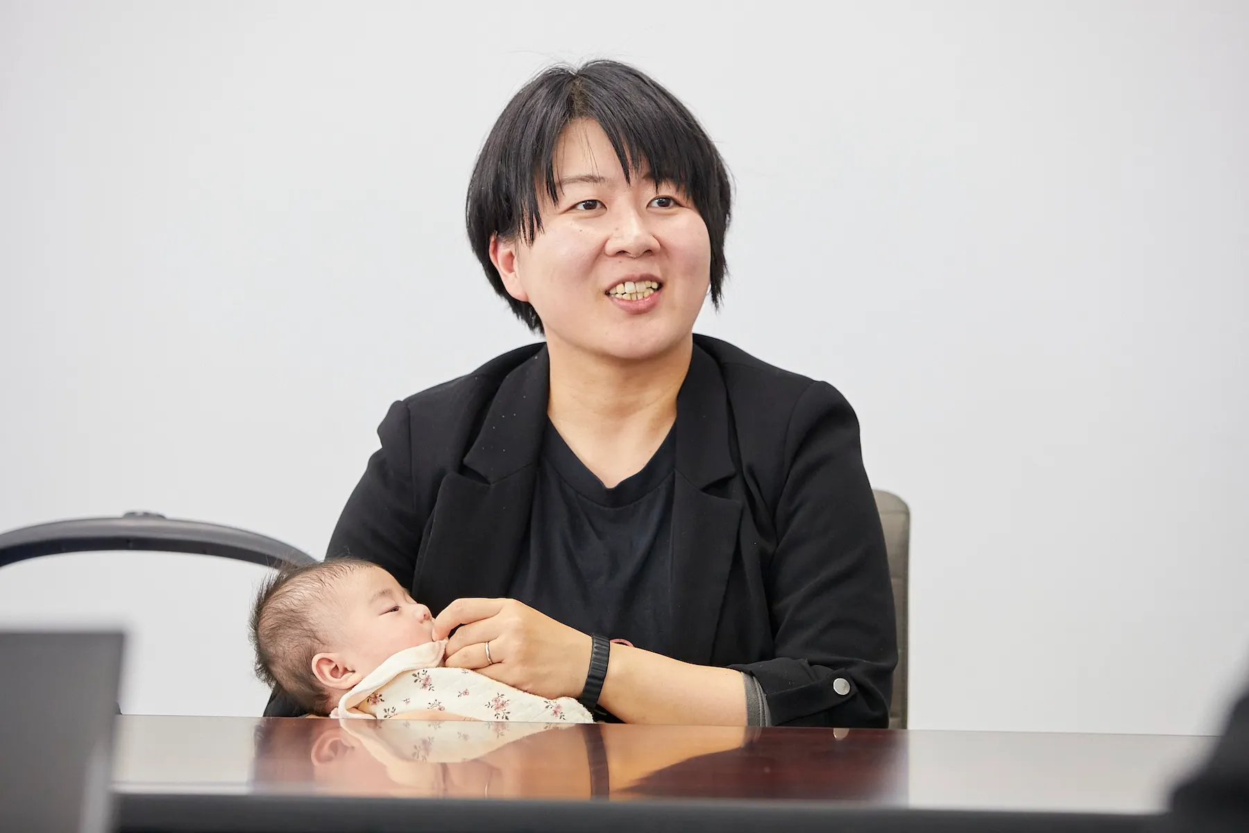▲株式会社kitafuku 取締役 松坂良美 氏(この日は生後間もないお子さんを抱きながら取材に応じてくれた)