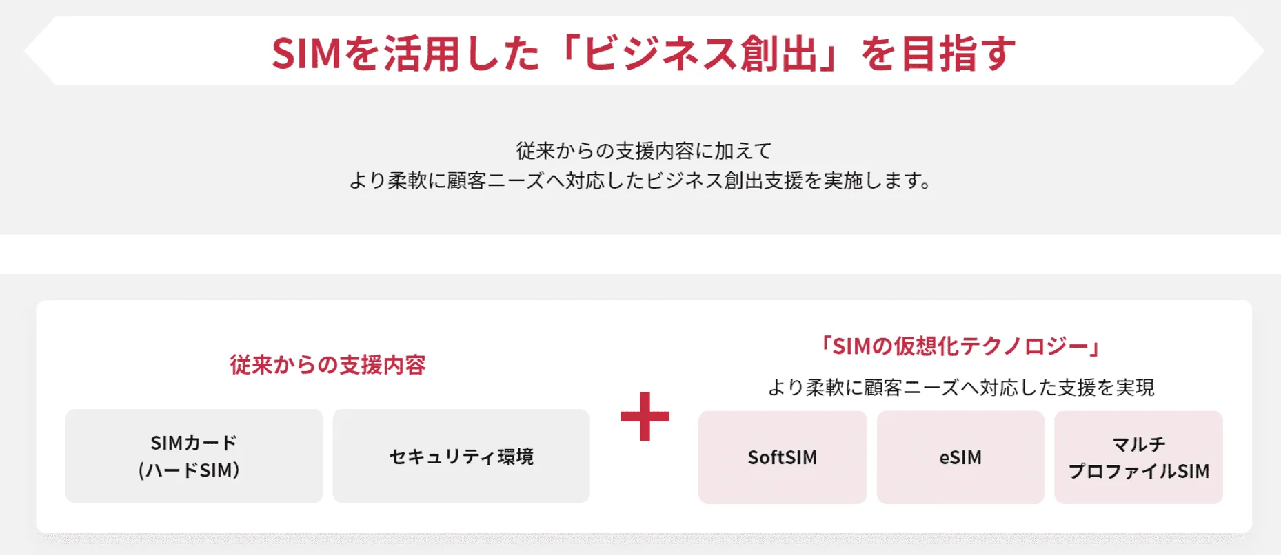 ▲従来からの支援内容に加え、「SIMの仮想化テクノロジー」を活用することで新たなビジネスを創出する。