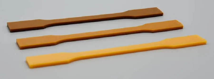 ▲独自の重合プロセスによりCNFを均一に分散させた次世代ナイロン。上画像は、射出成形片の外観。