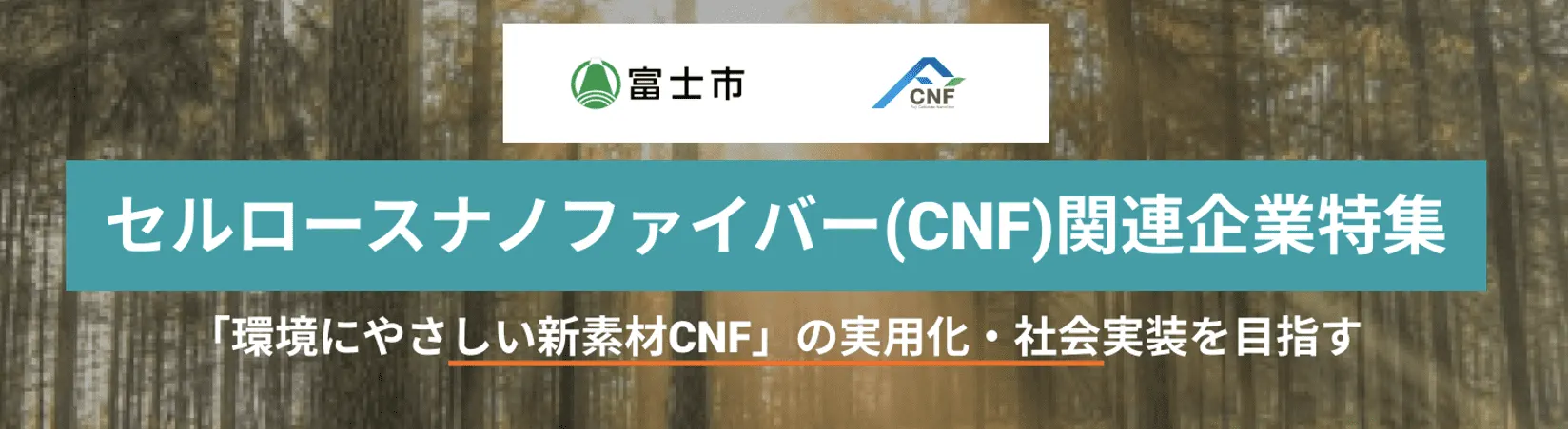 富士市は「デジタルツールを活用したCNFオープンイノベーション促進事業」を推進している。ものづくりのまちとして発展を遂げてきた富士市は、植物由来で環境にやさしく、同市の基幹産業である紙・パルプ産業とも関連の深い新素材CNFに着目し、2019年3月に「富士市CNF関連産業推進構想」を策定。同年11月には同推進構想に基づき会員制の「富士市CNFプラットフォーム」を設立した。
