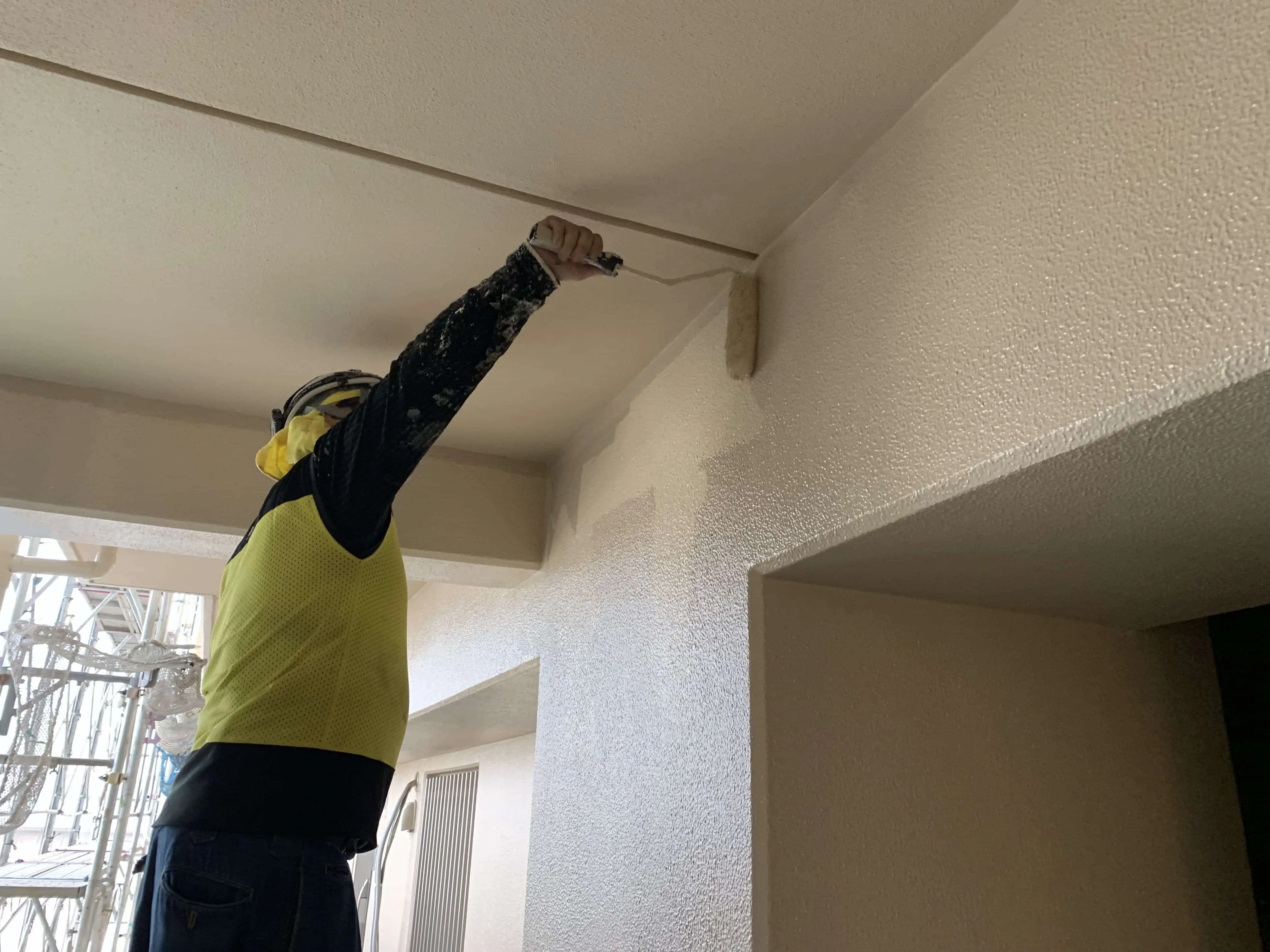 協立技研は、工事中も居住者が快適な生活を送れるように安全・安心な施工を心掛けております。工事中において、安全通路を確保し、「立入・進入禁止」等の安全標識を適宜設置しています。また、現場周辺での工事車両の誘導や運行制限・速度制限を遵守し、保護シートで居住者の車両への塗料飛散防止も徹底しております。
