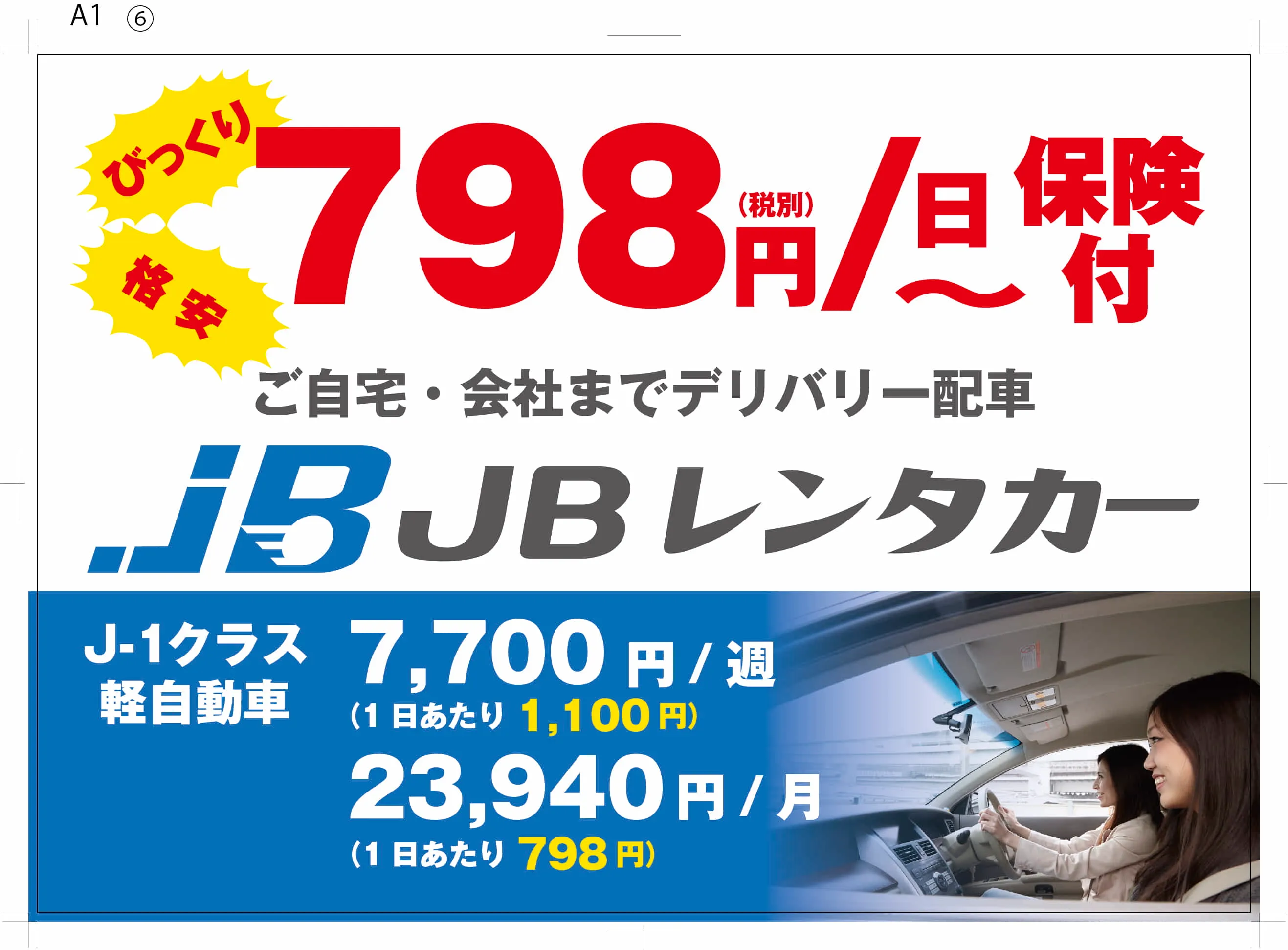 JBレンタカー:1日798円/日~中長期専門格安レンタカー/ご自宅、会社、空港までデリバリー配車サービス。