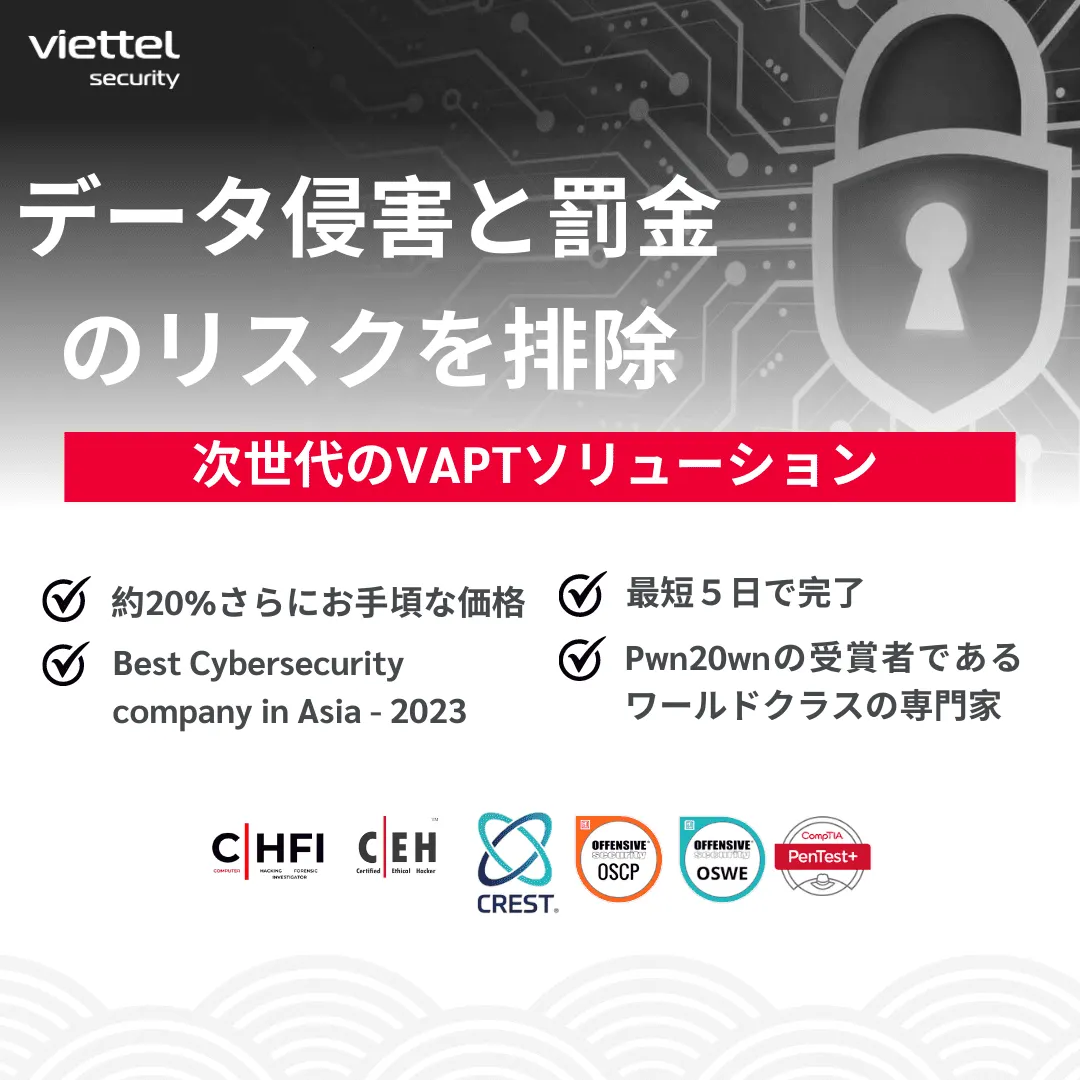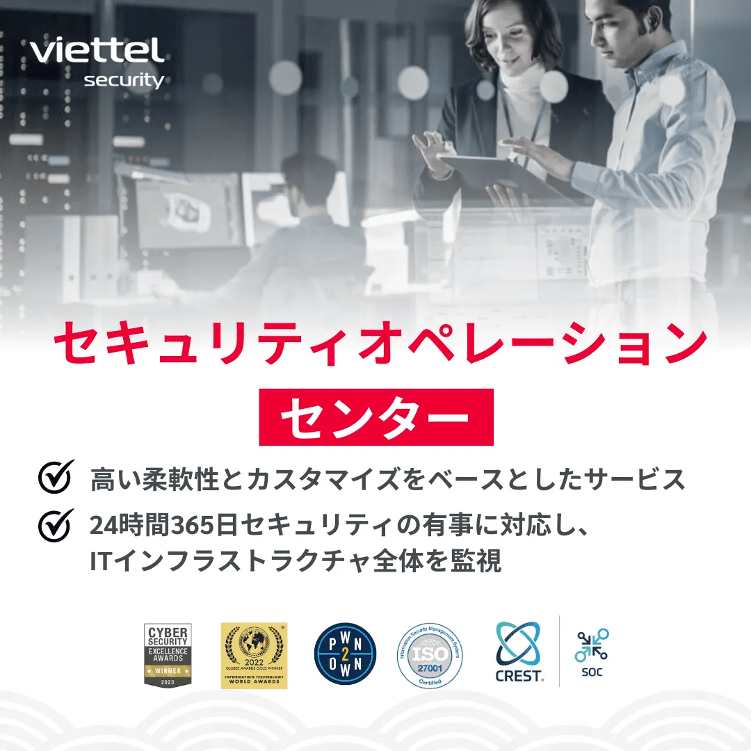 - 「Viettel Cyber Security」は Viettel グループの子会社であり、徹底した調査と情報セキュリティソリューションの開発に取り組み、幅広いサイバーセキュリティサービスとプロダクトを国内外に提供しています。 日本におけるクライアント開拓を実施したいため、販売パートナーになって貰える、ITベンダー、セキュリティコンサルティング企業などを選定し、アライアンスを推進したいです。 販売力のあるパートナー企業を開拓し、日本での販路拡大のプロジェクトを推進するため、パートナー企業の紹介やアライアンスを含めた実行支援をお願いしたいと考えています。