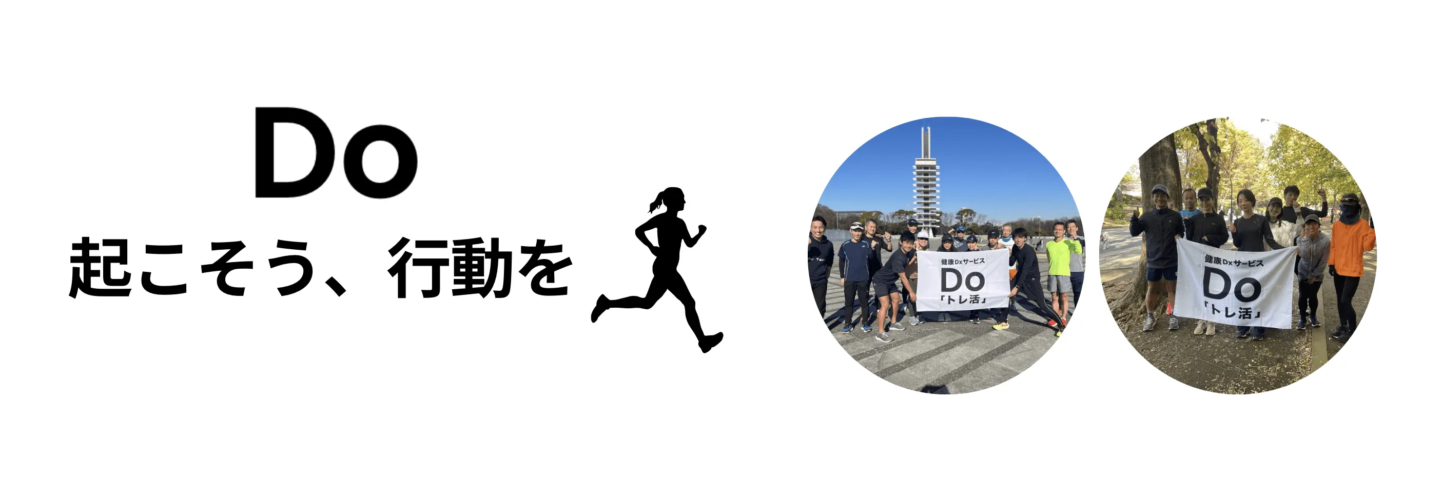 - データをもとに健康促進のモチベーションを2倍ブーストするサービス「Do」を展開しています。 当社のサービス「Do」は専任トレーナーによる対面型少人数制の運動プログラム(ヨガ、サーキットトレーニング、ランニング等)を実施しています。参加者様は運動プログラムを実施後、自己申告による健康データ記録とアンケート回答を「Do note」というWebアプリ上で行っていただき、カラダを動かすことと健康状態の振り返りを定常化しております。