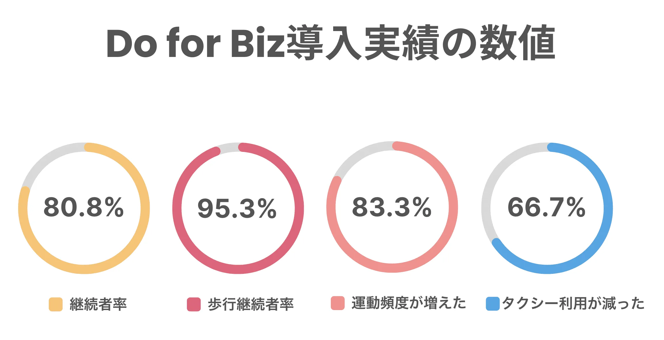 データをもとに健康促進のモチベーションを2倍ブーストするサービス「Do」を展開しています。一般参加者、法人向けの両方をサービス提供しており、健康改善行動の継続が無理なく可能なサービスを目指しています。