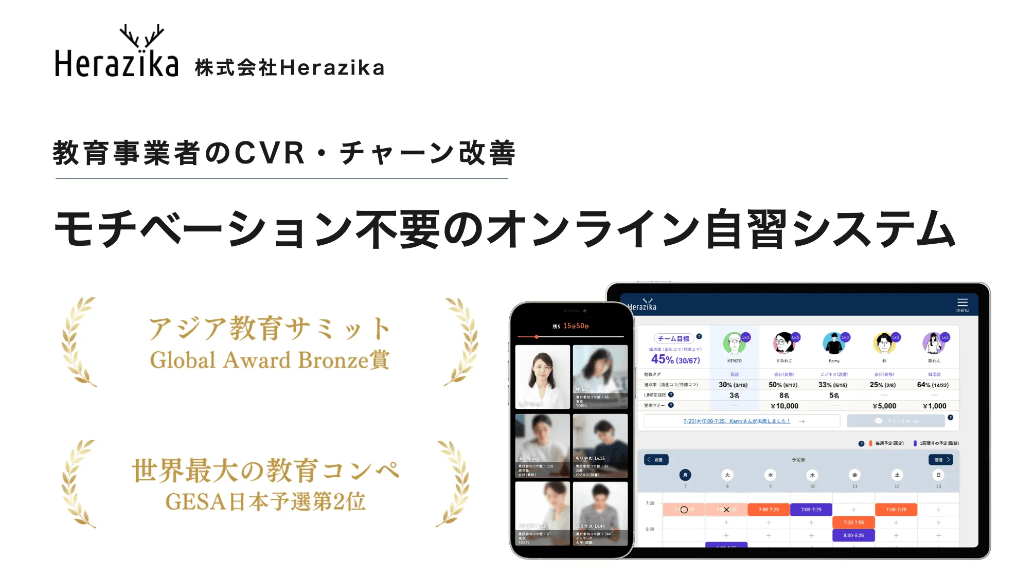 株式会社Herazikaは、学習者向けに自学習支援(習慣化・集中力)サービスの開発・運用を行う企業です。