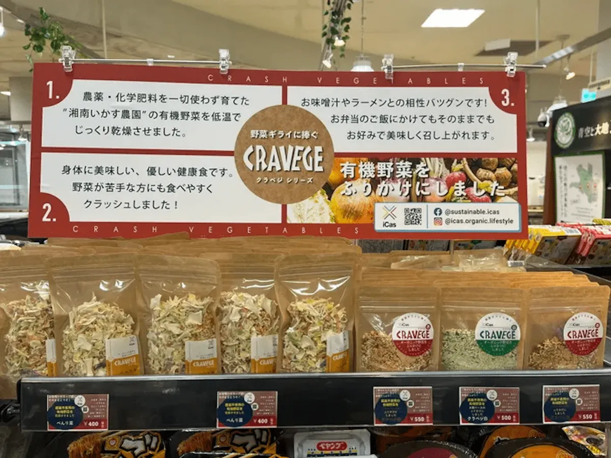 ▲有機野菜をふりかけにして販売するなど、いかすでは新たな事業にも積極的に着手している。