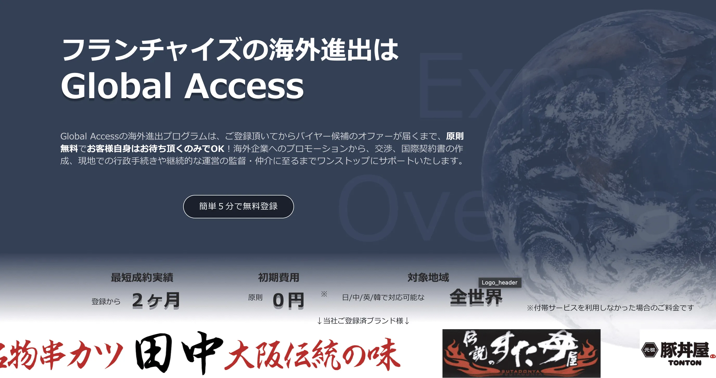 - フランチャイズライセンスの国際取引の仲介、及びフランチャイズの海外進出に付帯する諸業務の代行(多言語ホームページ制作/材料資材輸出入仲介/ブランドマーケティング)
