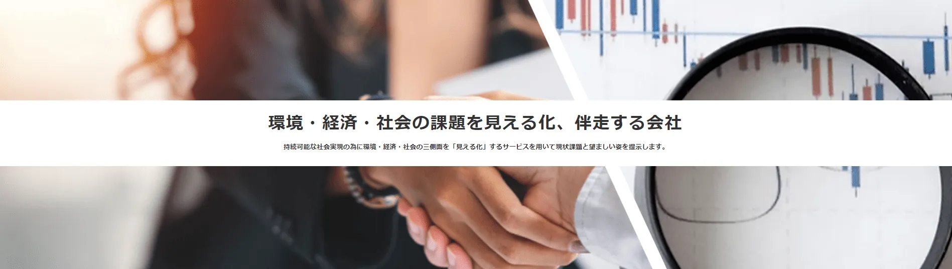 - 1.環境・経済・社会の三側面から現状を「見える化」します 2.課題と望ましい姿を提示し、検討・計画策定をお客様と取り組みます 3.伴走者として、課題を解決し望ましい姿になる為に、お客様と共に行動します