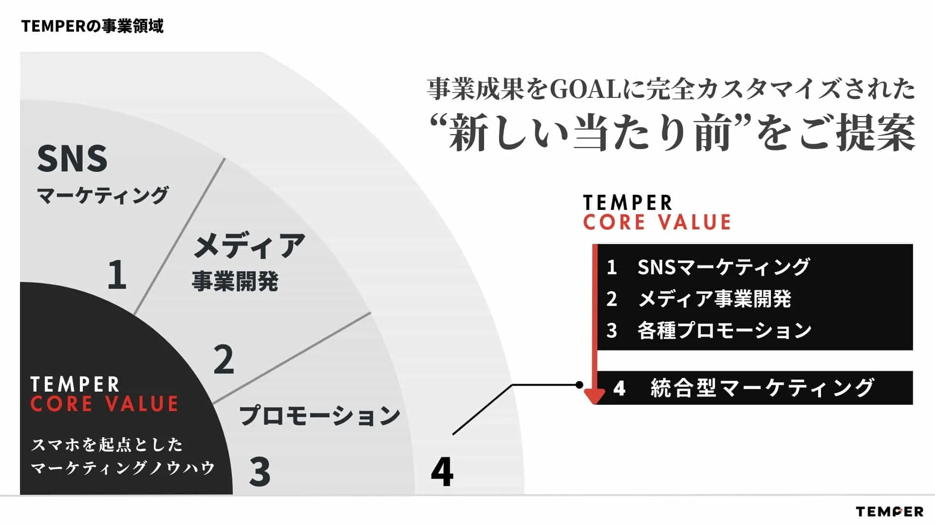 株式会社TEMPERは、「スマホを最終着地点として行動変容を促す仕掛けづくり」を事業とするマーケティング/プロモーション企業です。
