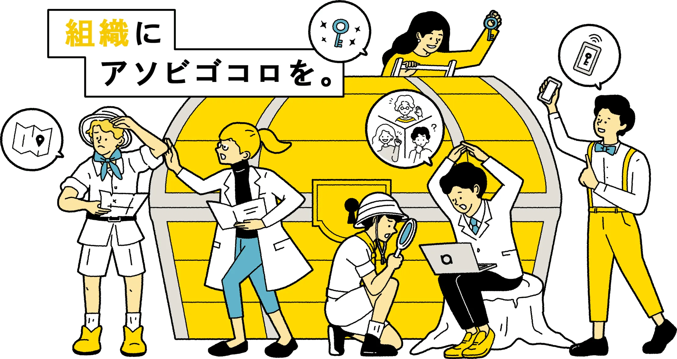 「組織にアソビゴコロを。」というメッセージを掲げ、まずは身近な同僚とのコミュニケーション課題改善に努める研修を提供しています