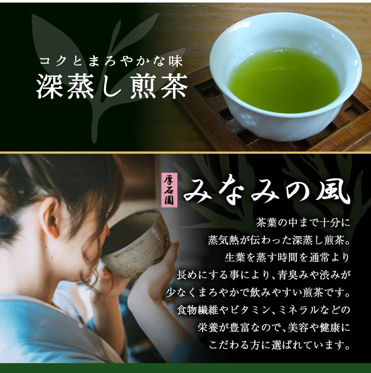 飲みごたえのある深みと甘みと香り引き立つ、苦みのない深蒸し煎茶です。