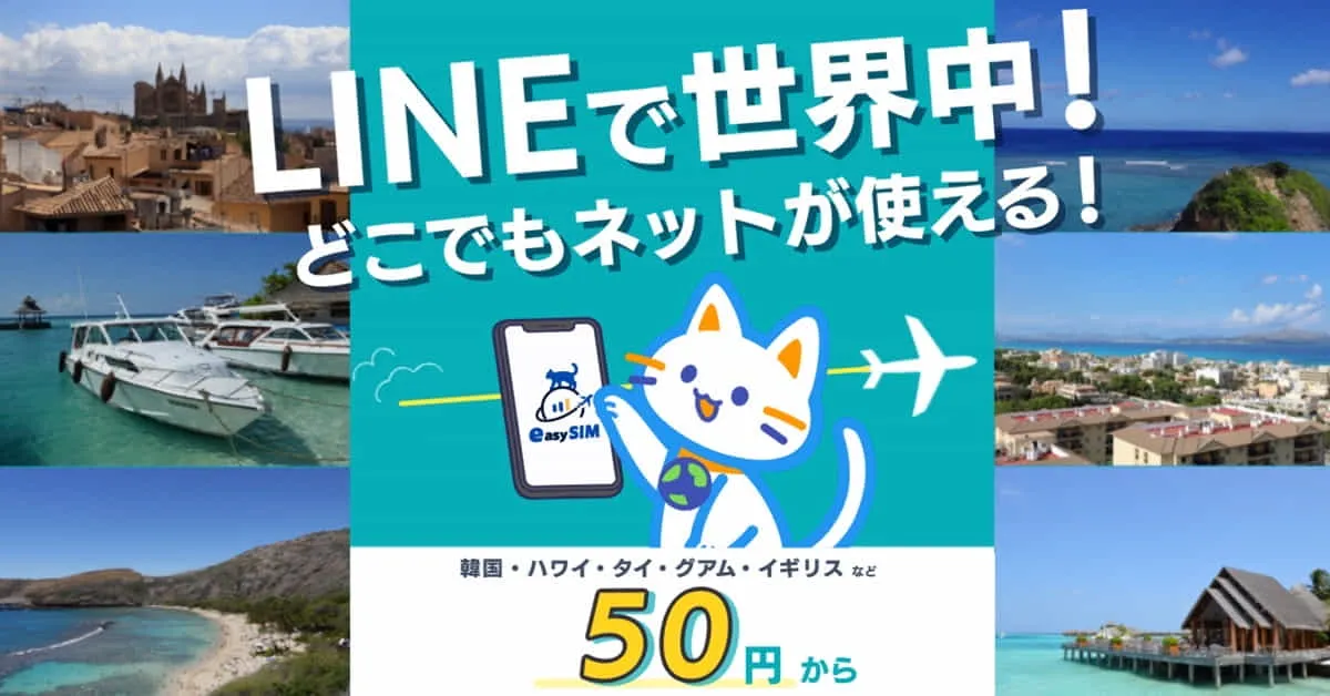 easySIMはLINEからeSIM(SIMのようにチップ型でなく、オンラインでインストールできるSIM)を購入できるサービスです。追加容量の購入や現在の利用量などもLINEで確認できます。