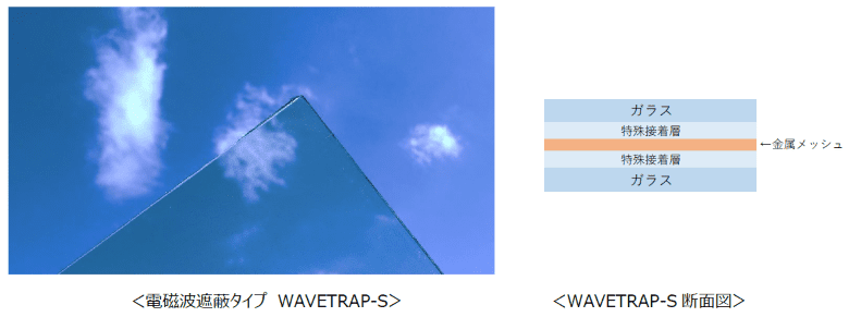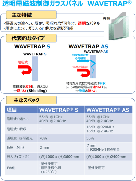 ・電磁波制御透明パネル「Wavetrap」(https://www.asahiglassplaza.net/products/wavetrap-s/)