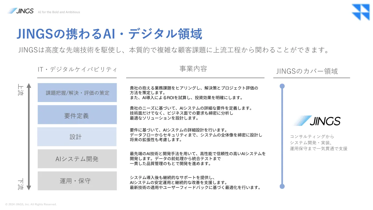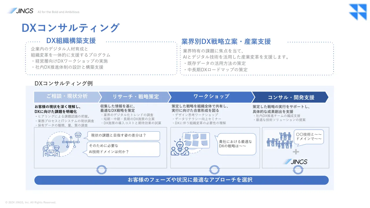 特に、AIを活用したデジタルトランスフォーメーションの推進においては、クライアントの業務の深い理解と、迅速な実装が成功の鍵となります。