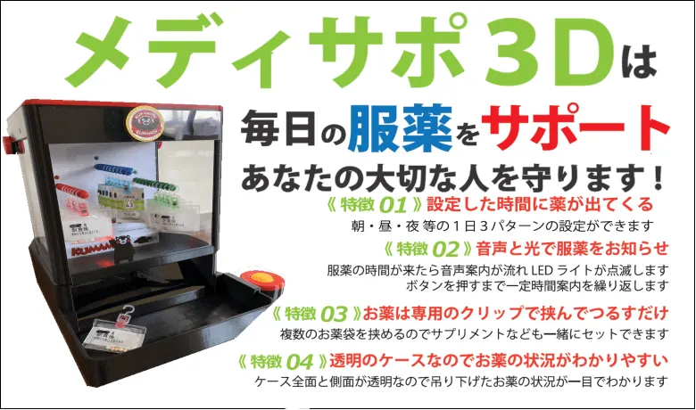 弊社では 服薬管理をサポートする新しい装置『メディサポ 3D 』を開発 しました 。