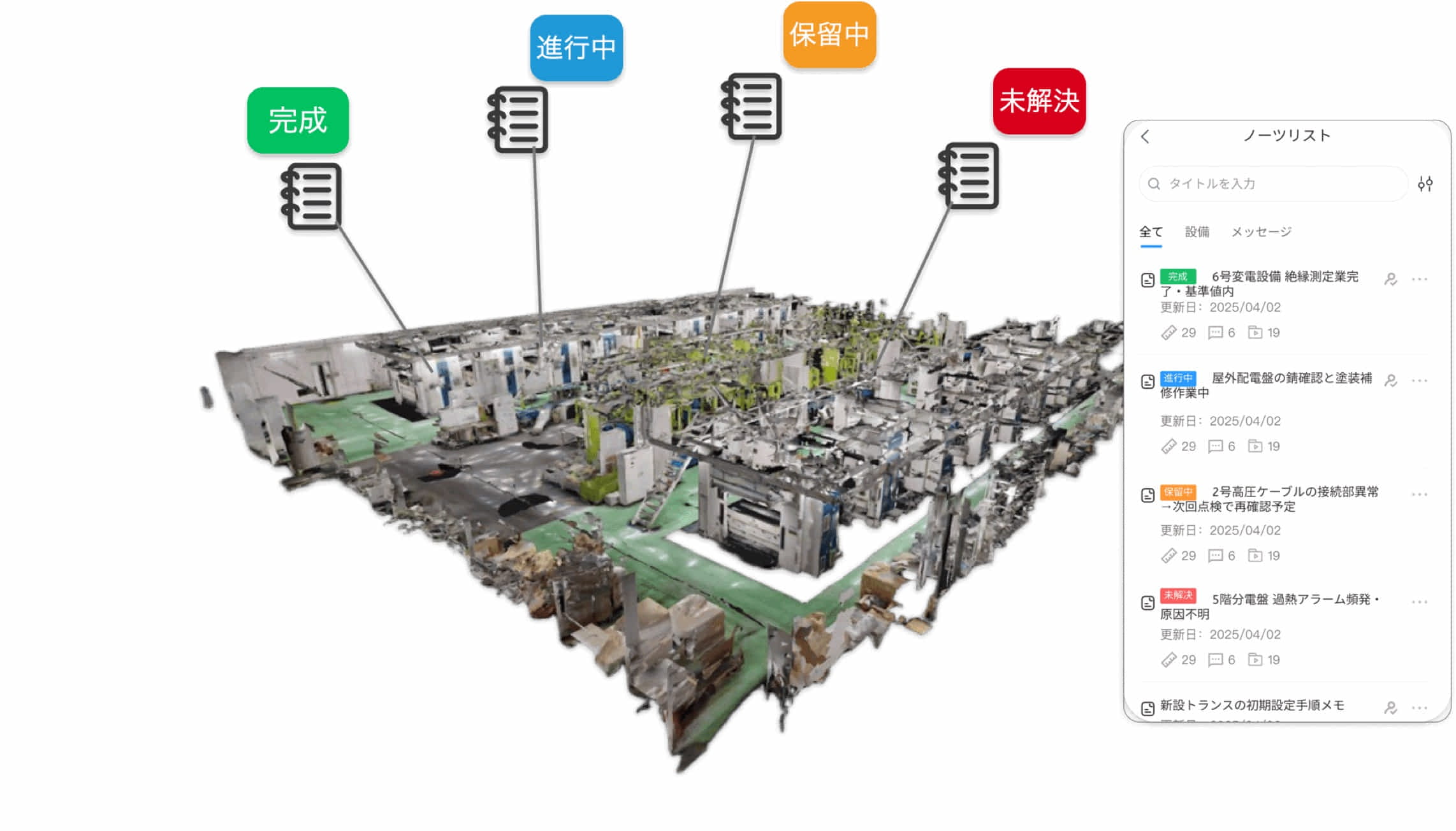デジタルツインと連動した設備保全支援、現場メモや記録のAI知識化、技能・ノウハウの効率的な継承を実現。