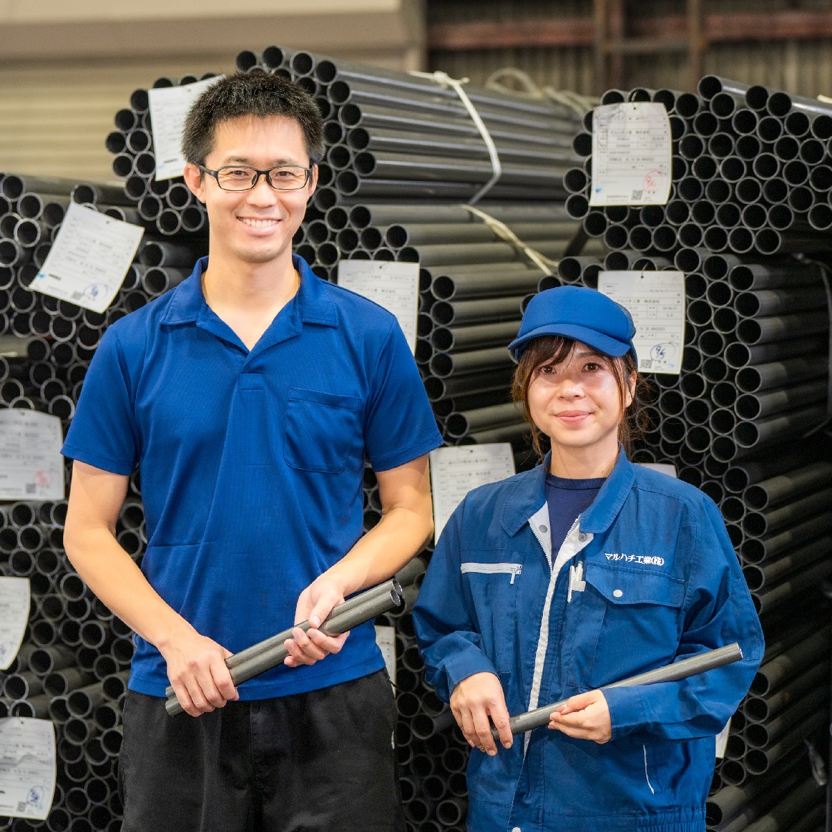 マルハチ工業・田中氏 : 当社は1954年に創業しました。当時、この地域は繊維産業が盛んで、当社も機織り機の部品などを取り扱っていました。その後、日本の基幹産業の変化に合わせて自動車部品へと事業の軸足を移し、現在は防振金具やシートパイプなど金属加工品を主に取り扱っています。