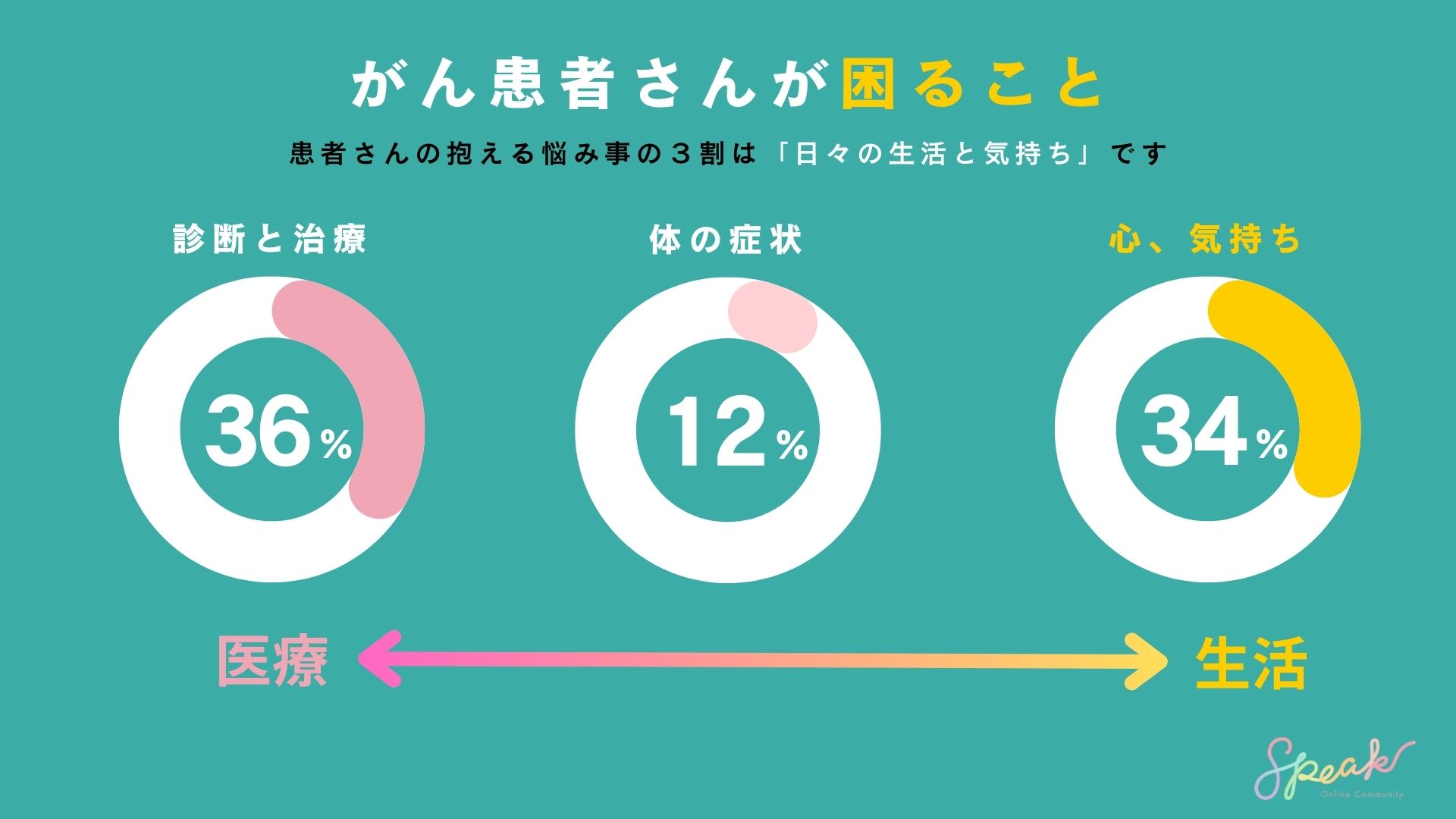 さらに、これまで累計15,000人のがん患者さんの声をもとに、孤独感や情報迷子を解決するオウンドメディア**「Speak」**を運営中です。