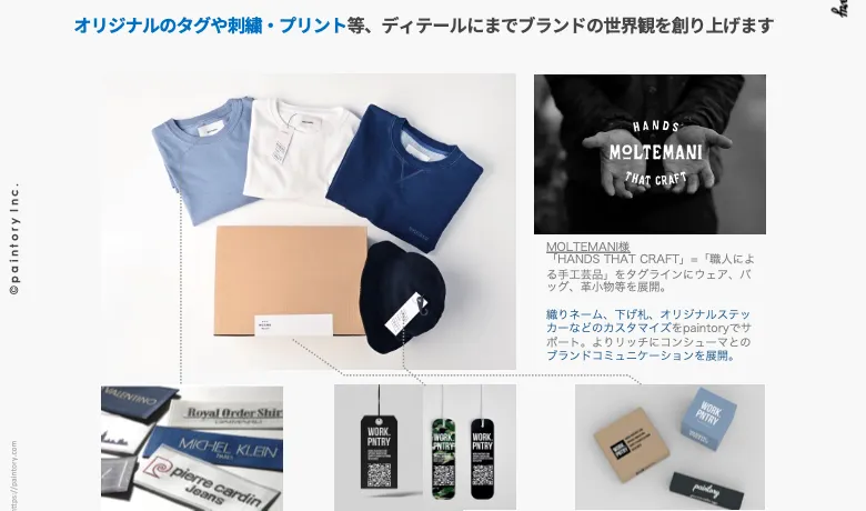 - 個人・企業向けカスタマイズアパレルの製作・販売サービス。