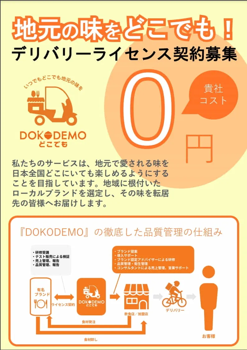 弊社は『いつでも どこでも 地元の味を』をコンセプトにしたDOKODEMOというサービスを展開してます。