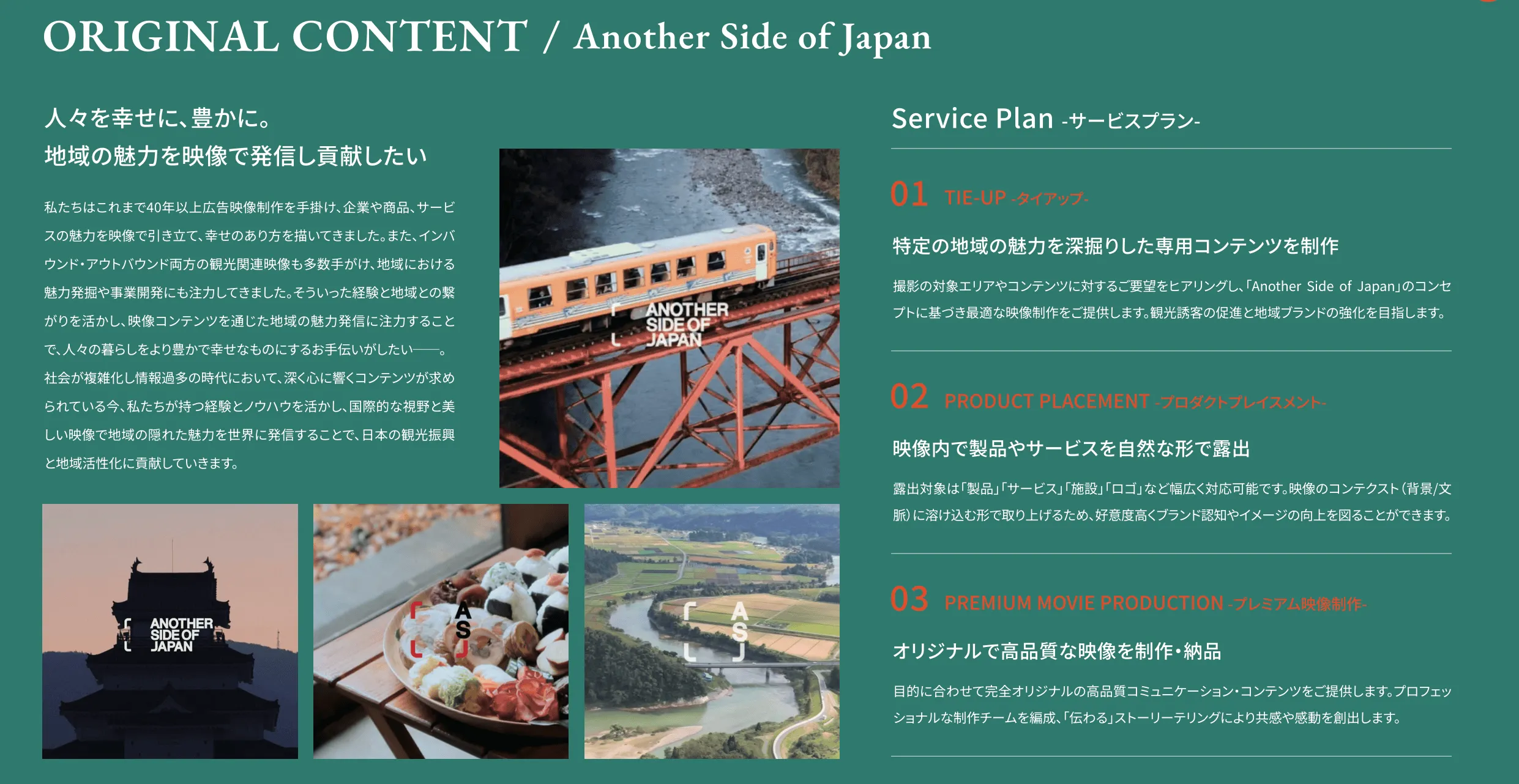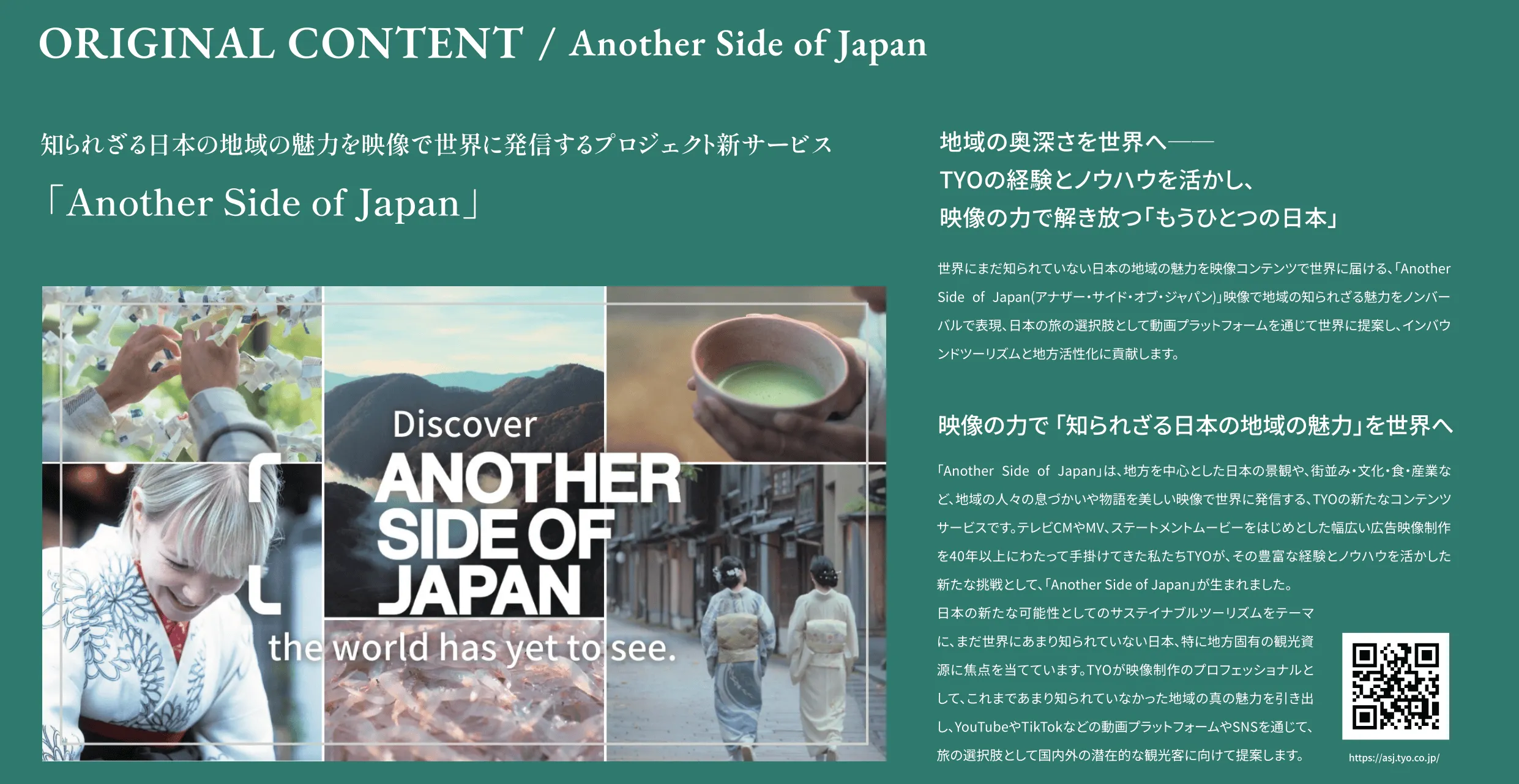 ・当社コンテンツ「Another Side of Japan」を活用した観光誘客・シビックプライドの醸成、地域ブランディング、関係人口の創出に寄与する事業の共創