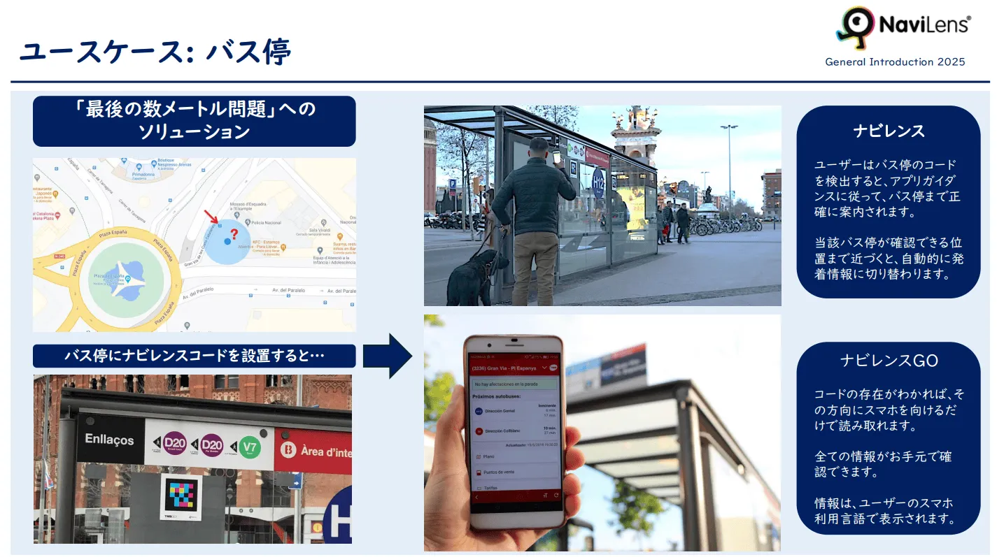 乗合バスの「バス停留所の位置やバス行先など、必要情報が分かりにくい/必要情報を入手しにくい課題」をテクノロジーで解決します。